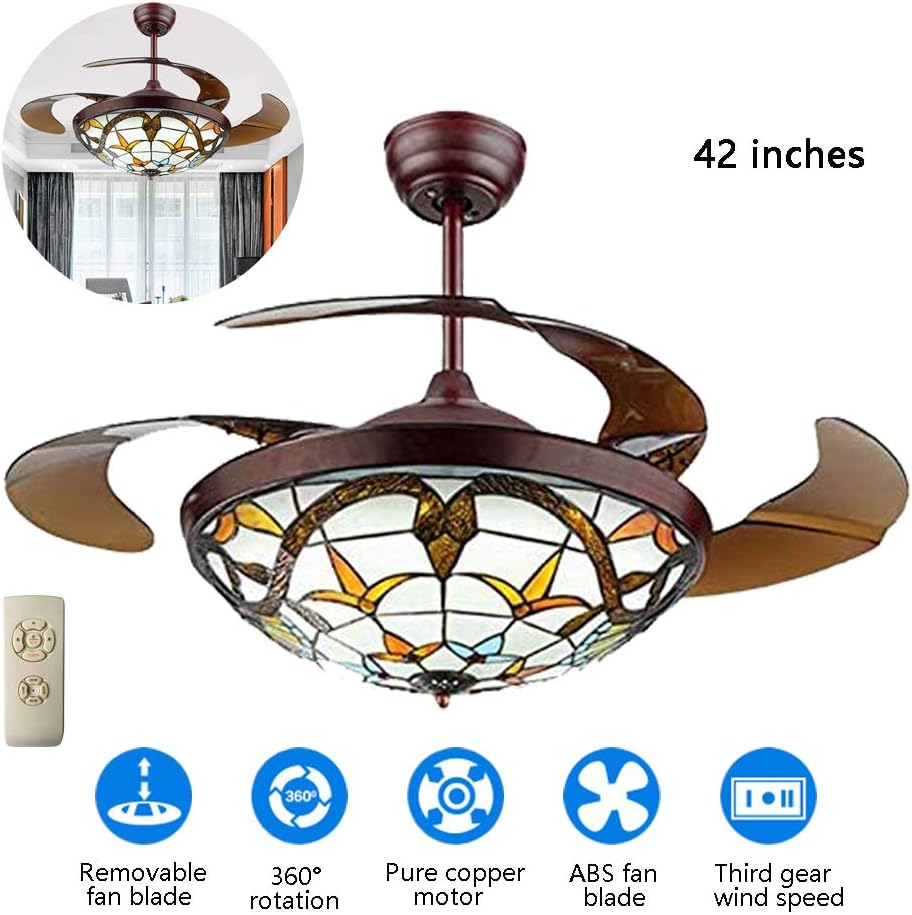 Ceiling Fans With Tiffany Lights / Rustic Retractable Ceiling Fan Chandelier With Dimmable Lights 7pm Lighting / Ceiling fans with tiffany shades.